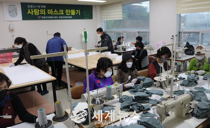 이번 사랑의 면 마스크 제작은 담양군자원봉사센터 주관으로 담양군공예인협회(회장 허무)회원 등 25명의 자원봉사자가 참여해 여성회관 양재실의 재봉틀을 이용해 제작하고 있다.