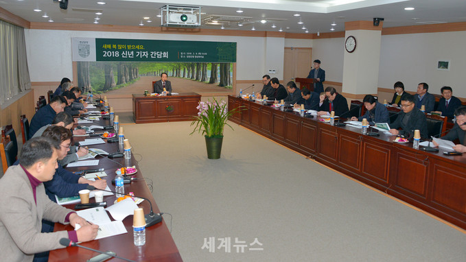 ▲ 최형식 담양군수는 8일 군청 영상회의실에서 신년 기자간담회를 열고 2018년 새해 군정 운영방향을 제시했다. © 세계뉴스 |