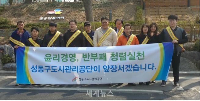 [세계뉴스] 조홍식 기자 = 성동구도시관리공단(이사장 김종수)은 지난 29일 용답동 일대 새 봄맞이 환경정비 및 길거리 청렴 캠페인을 실시했다.