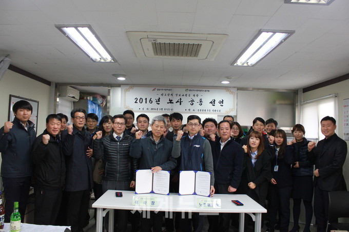 ▲ 성동구도시관리공단과 성동구도시관리공단노동조합은 23일 공동의 목표를 달성하기 위한 노사 공동선언문에 합의했다. © 세계뉴스 |