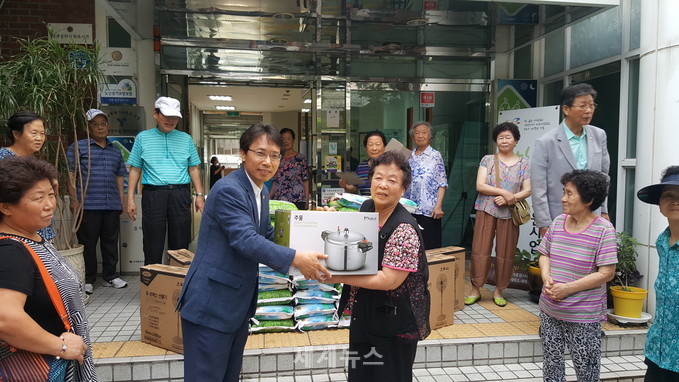 [세계뉴스] 전승원 기자 = 김광수 서울시의원(국민의당, 노원5)은 16일 상계종합사회복지관에서 노인정과 홀로 사시는 어르신들에게 여름을 잘 보낼 수 있도록 물품을 전달했다.