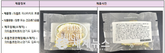 [세계뉴스 = 전승원 기자] 식품의약품안전처가 경기도 김포시에 위치한 식품제조·가공업체 '더타틀르팩토리'가 생산하고, 유통전문판매업체 '더타틀르컴퍼니'가 판매하는 '타틀르 피스타치오 로쿰'에서 아플라톡신이 기준치를 초과 검출됐다고 밝혔다.