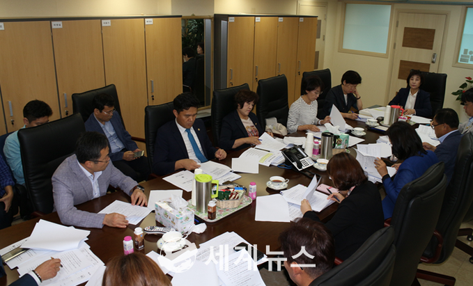 ▲ 10일 나백주 시민건강국장이 김혜련 위원장과 보건복지위원들에게 현안사항에 대한 업무보고를 하고 있다. |