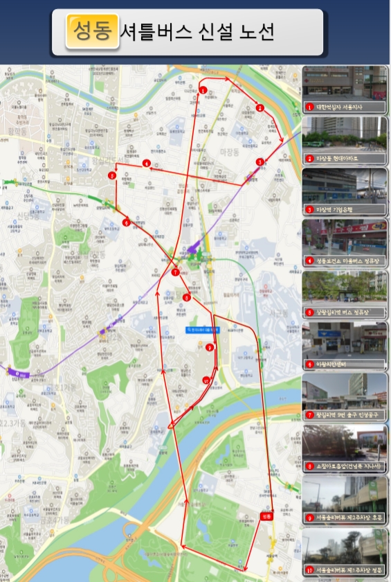 신설노선은 체육센터를 출발해 ▲ 마장동 일대 ▲ 왕십리 뉴타운(센트라스, 텐즈힐 아파트) 일대 ▲ 서울숲리버뷰자이 아파트를 경유하며 오전 8시 1회차를 시작으로 평일 11회, 주말 9회 운행한다