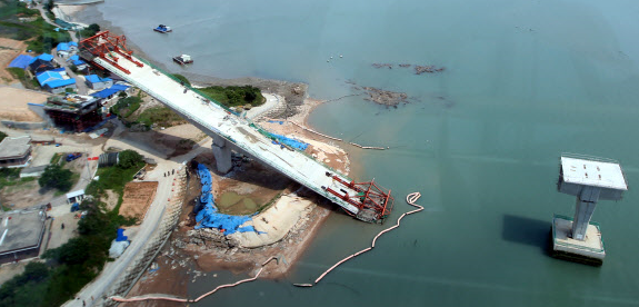 [세계뉴스] 안종묵 기자 = 8일 전남 영광과 무안을 잇는 '칠산대교'가 공사 중 기울어지며 무너졌다.