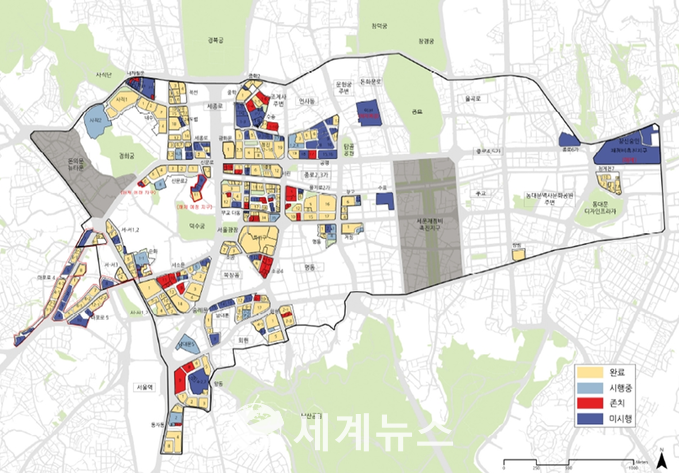 ▲ 한양도성 도심부 사업 추진현황도. (2016.2월 현재) |
