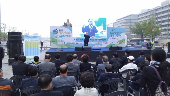 ▲ 이은성 재경담양군향우회장이 22일 서울 광화문 광장에서 열리는 '2016광주전남 귀농귀촌 박람회'에 참석하여 맑은 대나무숲 청정지역 담양을 소개하고 있다. © 세계뉴스 |
