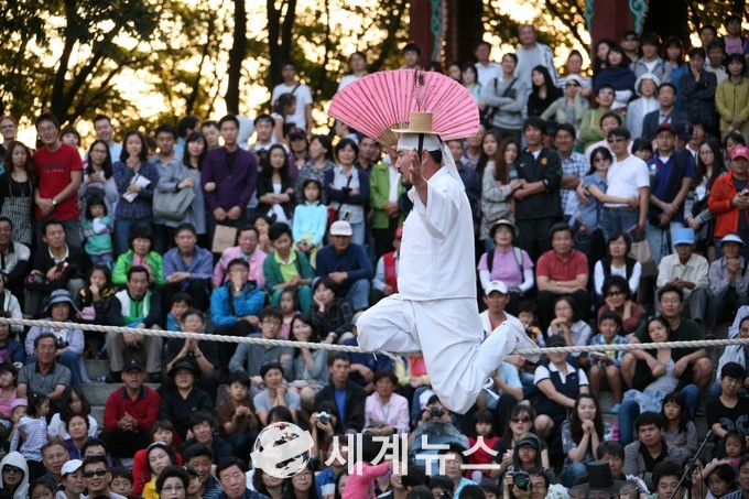 추석 당일 오후 3시, 남산 팔각광장에 오르면 전통줄타기 '판줄'을 만날 수 있다. 국가무형문화재 제58호로 지정된 전통줄타기보존회에서 한가위를 맞아 선보이는 이번 공연은 평택농악의 풍물놀이로 첫째마당을 시작하여 삼현육각(민속연주단)의 연주에 맞춰 탈광대가 등장해 춤사위를 선보이고, 줄 위에 올라 40여 가지의 다양한 기예를 벌이는 줄광대 놀음으로 이루어져 신명나는 전통 연희의 진수를 맛볼 수 있다.