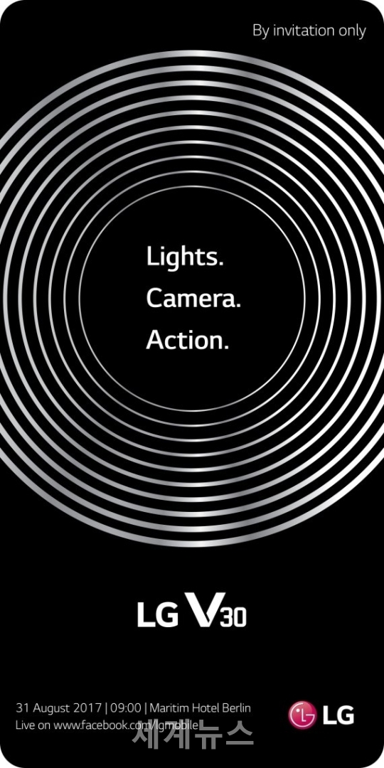 LG전자는 8일 세계 언론에 전략 스마트폰 V30' 공개 행사 2차 초청장을 발송했다. LG전자는 오는 31일 오전 9시(현지시간) 독일 베를린 마리팀호텔에서 V30를 공개한다. 공개 행사는 제품 설명과 체험으로 이뤄지며 약 100분간 진행된다.
