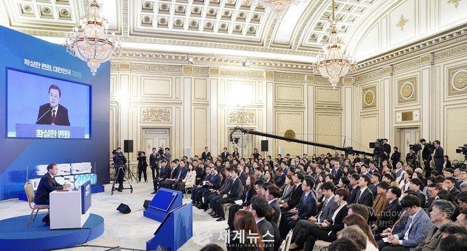 [세계뉴스 탁병훈 기자] 문재인 대통령이 14일 청와대 영빈관에서 신년 기자회견을 열고 새해 국정구상을 발표했다.