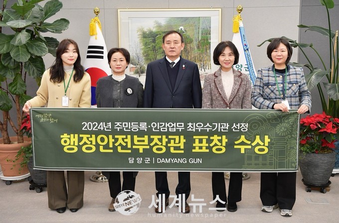 [세계뉴스 양경희 기자] 담양군(군수 이병노)이 2024 주민등록·인감(서명확인)업무 기관 평가에서 행정안전부장관 표창을 받으며 담양군이 추진한 주민등록 업무를 비롯하여 대민행정 서비스 제고를 위한 다양한 노력의 성과를 인정받았다.