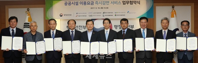 [세계뉴스] 조홍식 기자 = 성동구도시관리공단과 행정안전부 등 9개 기관은 19일 ‘공공시설 이용요금 즉시감면 서비스’ 추진을 위한 업무협약을 체결했다.