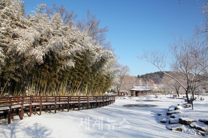 [세계뉴스] 한차수 기자 = 새벽까지 담양에 쏟아지던 눈이 멈췄다. 따사로운 햇살이 내려쬔 오후 흰 눈이 내려앉아 쉬고 있는 듯 담양 죽녹원의 설경이 아름답게 담겼다.