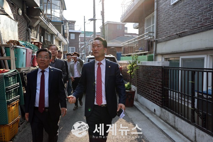 [세계뉴스 정서영 기자] 서울시의회 주택공간위원회 김태수 부위원장(국민의힘, 성북구 제4선거구)과 서울주택도시공사(이하 SH공사) 김헌동 사장이 3일 모아타운 공공관리 시범사업 대상지로 선정된 성북구 석관동 일대 현장을 방문했다.