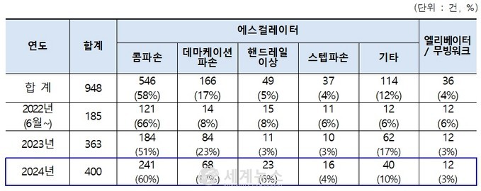 [세계뉴스 차성민 기자] 서울교통공사(이하 ‘공사’)와 한국승강기안전공단(이하 ‘공단’)이 공동 운영하는 지하철 승강기(에스컬레이터, 엘리베이터, 무빙워크 등) 상시 모니터링 제도 ‘또타 가디언즈’가 2024년 총 400건의 안전 위험 요소를 발굴하고 신속한 조치를 통해 승강기 안전사고를 예방했다.