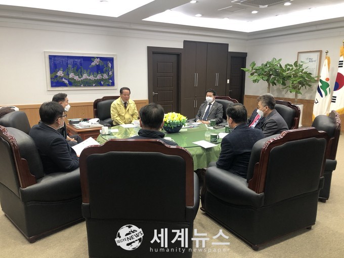 ▲ 최형식 담양군수(가운데)가 코로나19 지역사회 확산이 우려됨에 따라 종교시설 등 다중이용시설 관련자들과 대책을 논의하고 있다. |