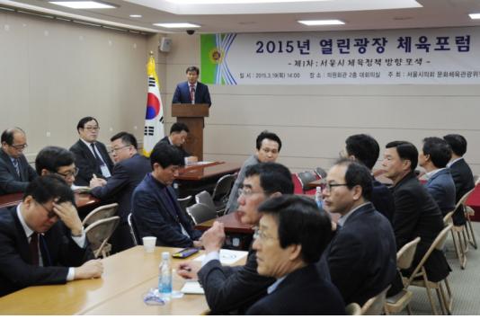[세계뉴스 전승원 기자] 서울시의회 문화체육관광위원회 소속 문상모 의원(새정연, 노원2)은 19일 시의회별관 2층 대회의실에서 “서울시 체육정책 방향 모색”이라는 주제를 가지고 정책 토론회를 개최했다.