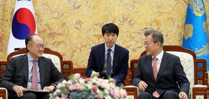 [세계뉴스] 탁병훈 기자 = 문재인 대통령은 25일 오전 11시 김용 세계은행(World Bank)총재와 만남을 가졌다. 이 자리에서 문 대통령은 김용 세계은행 총재가 ‘아프리카개발은행 연차총회’에 참석한 것에 대한 고마움을 전했다.