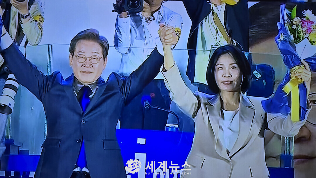 [세계뉴스 = 정서영 기자] 이재명 더불어민주당 대선후보가 제21대 대통령 당선이 확실시되며, 4일 새벽 여의도 국회 앞에서 사실상 당선 인사를 전했다.