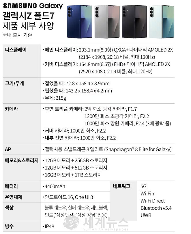 ■ 폴드7 “역대급 얇고 가볍다”… 2억 화소 카메라와 멀티모달 AI 탑재