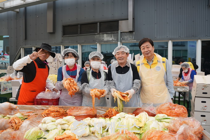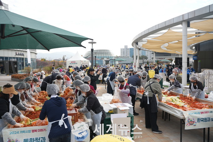 [세계뉴스 차성민 기자] 서울시농수산식품공사(사장 문영표, 이하 ‘공사’)는 15일 가락몰 3층 하늘공원에서 가락시장 공익법인 (사)희망나눔마켓(이사장 이원석) 및 유통인, 그리고 시민이 함께하는 ‘2024 가락시장 행복 더하기 사랑 나눔 김장 축제’를 개최했다.