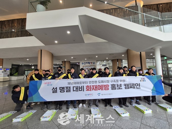 [세계뉴스 차성민 기자] 서울시농수산식품공사(사장 문영표)는 지난 14일과 17일 두 차레에 걸쳐 설명절 대비 가락시장 화재 및 안전사고 예방을 위하여 도매법인 등 유통인 단체와 함께 화재예방 캠페인과 유통인 안전협의체를 개최했다.