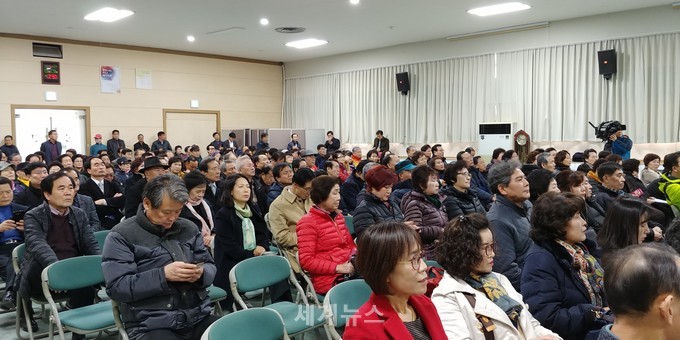 광진구청장 출마를 선언한 박 전 의장의 기자회견장에는 500여명의 지지자들이 모여 함께 지켜봤다.
