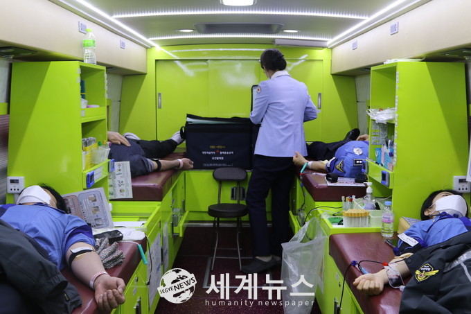 [세계뉴스 윤준필 기자] 보령해양경찰서(서장 하태영)에서는 2일(화) 오전 10시부터 보령해양경찰서 주차장과 대천항 해양경찰 전용부두에서 직원·의경 60여명이 헌혈에 동참했다고 밝혔다.