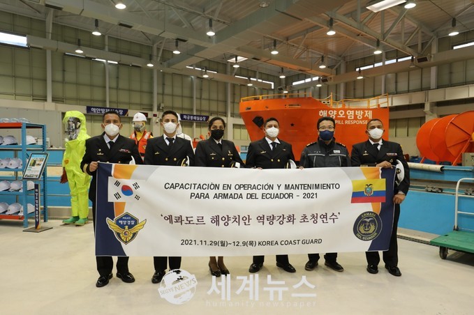 [세계뉴스 윤준필 기자] 지구 반대편 남미에 위치한 해양생태계의 보고(寶庫)이자 찰스 다윈의 진화론의 시작점인 ‘갈라파고스 군도’를 관할하는 에콰도르공화국 해군과 해경(Coast Guard)의 젊은 장교들이 우리 해양경찰의 함정운용방법과 엔진정비 노하우를 배우기 위해 한국을 방문하였다.