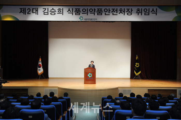 ▲ 취임사를 하고 있는 김승희 신임 식품의약품안전처장. © 세계뉴스 |