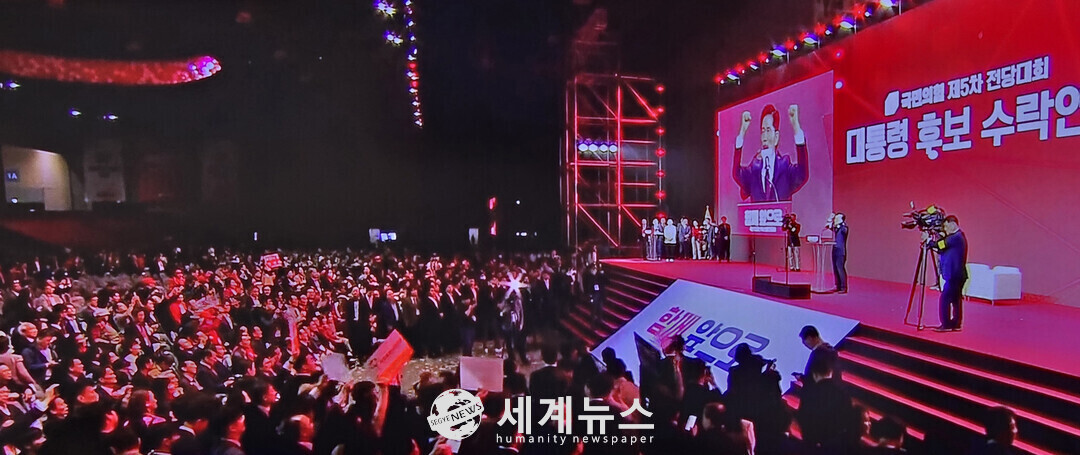 [세계뉴스 = 탁병훈 기자] 김문수 전 고용노동부 장관이 국민의힘 대선 후보로 선출됐다. 김문수 후보는 경기도 고양시 킨텍스에서 열린 전당대회에서 종합 득표율 56.53%를 기록하며 한동훈 전 국민의힘 대표를 꺾고 대선 후보로 확정됐다.