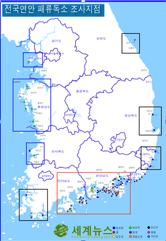 ▲ 전국연안 패류조사 지점 사진 |
