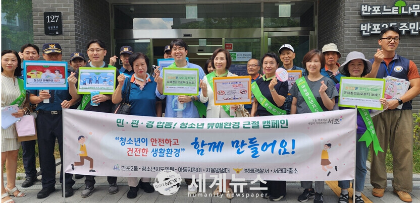 [세계뉴스 = 윤소라 기자] 서울특별시의회 운영위원장 이숙자(국민의힘, 서초2)는 지난 9일 서초구 반포2동에서 열린 '청소년 유해환경 근절 캠페인'에 참여해 청소년 보호와 건전한 생활환경 조성에 앞장섰다. 이날 캠페인에는 서초구 반포2동 지역사회 인사 20여 명이 함께했다.