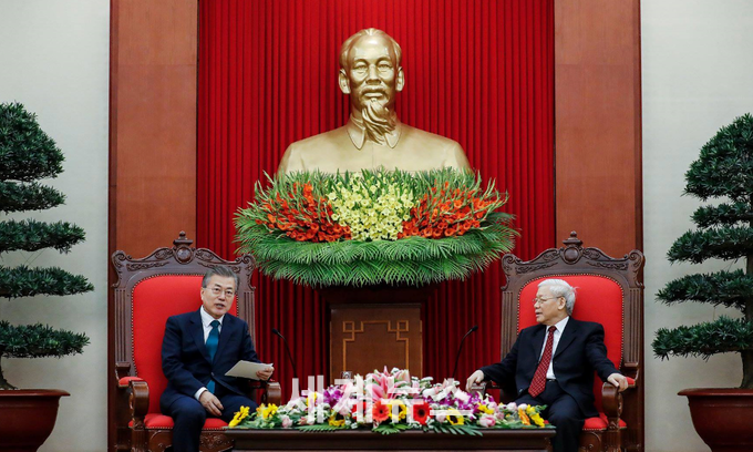 문재인 대통령은 이날 베트남 지도자들과의 면담에서 ‘신남방정책의 핵심 파트너’인 베트남과의 상생을 강조하며, 양국 우호증진 방안에 대해 논의했다.