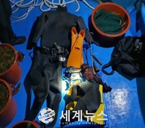 ▲단속된 불법포획 사범의 잠수장비 |