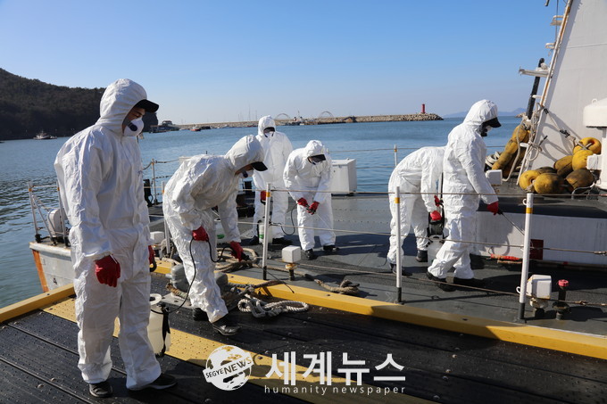 한 공간에서 근무하는 경비함정은 상시 방역환경을 마련하고 기침과 발열 증상을 점검한 뒤 함정에 오를 수 있도록 했으며, 출동 중 의심환자가 발생하면 즉시 격리조치하고 관계기관의 협조를 받아 의료진을 함정으로 파견에 검진을 실시할 계획이다.