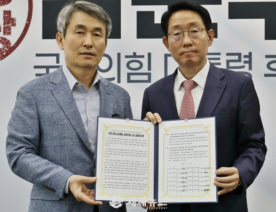 백호 서울교통공사 사장(좌), 김상훈 국민의힘 선대위 정책총괄본부장(우).