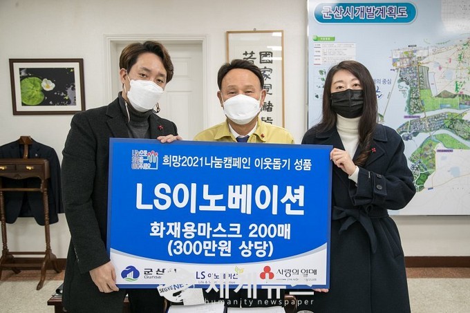 같은 날, 재난 안전용품 개발 및 제조 전문기업인 LS이노베이션(주)(대표 윤효진)도 이웃돕기 성품 화재용마스크 200매(300만원 상당)를 기탁했다.