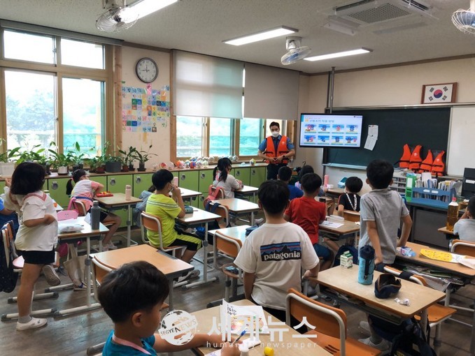 [세계뉴스 온라인뉴스부] 부안해양경찰서(서장 최경근)는 여름성수기를 맞아 임실초등학교를 방문하여 ‘찾아가는 연안안전교실’을 운영하고 생활 속 구명조끼 입기 실천운동을 추진하였다고 11일 밝혔다.