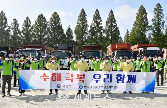 [세계뉴스 김형수 기자] 한국환경공단 호남지역본부가 임직원 자원봉사자 57명, 5톤 집게차 17대 등을 지원해 집중호우로 피해를 입은 담양군의 수해 복구에 힘을 보탰다.