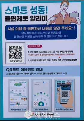 [세계뉴스 차성민 기자] 성동구도시관리공단(이사장 장기천)이 코로나19로 가속화된 온택트 시대를 맞아 공단 시설 이용 불편사항을 현장에서 비대면으로 즉시 신고할 수 있는 ‘불편제로 알리미’ 서비스를 제공한다고 밝혔다.