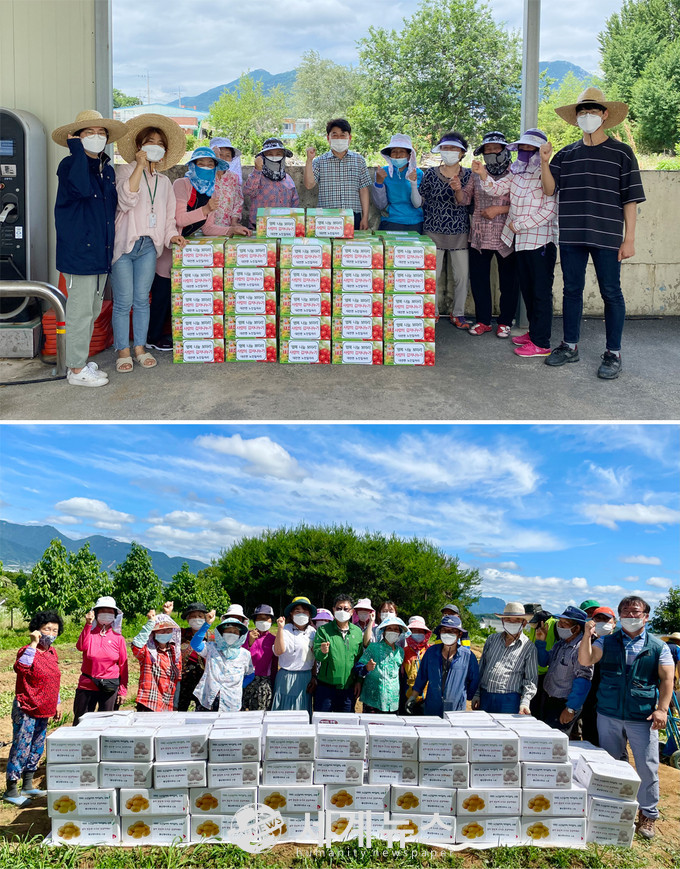 ▲ (위)대전면과 (아래)봉산면이 햇감자를 수확해 어려운 이웃과 지역아동센터에 전달했다. (출처: 담양군 제공) |