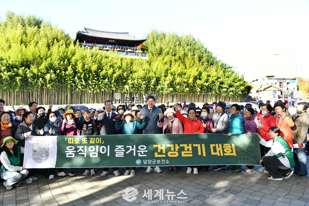 [세계뉴스 = 양경희 기자] 담양군(군수 정철원)이 지난 11일, 6개 읍·면에서 동시에 군민 400여 명이 참여한 ‘따로 또 같이’ 움직임이 즐거운 건강걷기대회를 개최했다.
