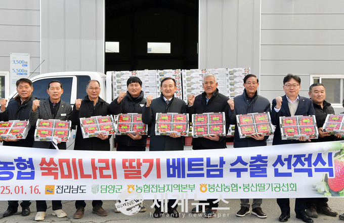 담양군(군수 이병노)은 지난 16일 봉산농협 산지유통센터에서 첫 선적식을 열고 딸기 256kg을 베트남으로 수출했다고 밝혔다.