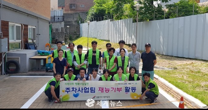 [세계뉴스] 조홍식 기자 = 성동구도시관리공단(이사장 김종수) 주차사업팀 직원 일동은 지역사회 공헌활동을 통한 행복나눔 실천을 위해 지난 9일 성동구 하왕십리동에 위치한 성동지역 아동복지센터 ‘이든아이빌’에서 주차라인 도색 사회공헌 활동을 펼쳤다.
