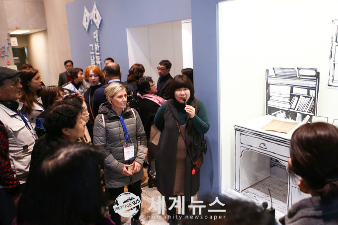 ▲ 대한역사박물관의 ‘대한독립 그날이 오면’ 특별전을 찾은 국내외국인들에게 전시담당 큐레이터가 해설을 곁들여 전시 이해도를 높이고 있는 모습. |