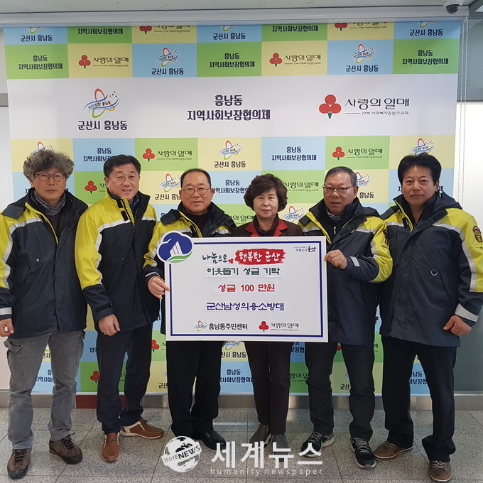 [세계뉴스 윤준필 기자] 군산시 흥남동은 남성의용소방대가 지난 24일 흥남동주민센터를 방문, 어려운 이웃에게 전달해 달라며 이웃돕기 성금 100만원을 기탁했다고 밝혔다.