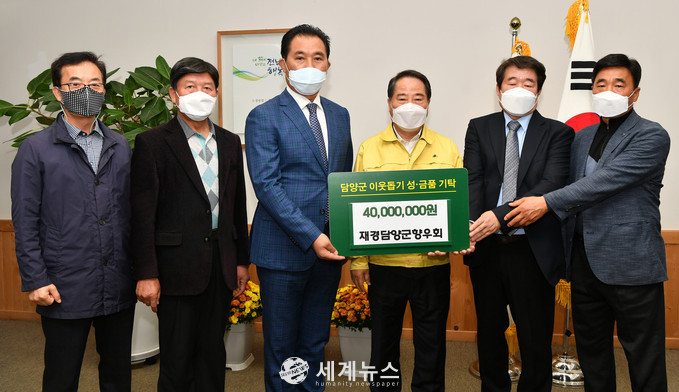 [세계뉴스 김형수 기자] 담양군(군수 최형식)은 재경담양군향우회(회장 이성백)에서 이웃돕기 성금 4,000만원을 담양군에 전달했다.