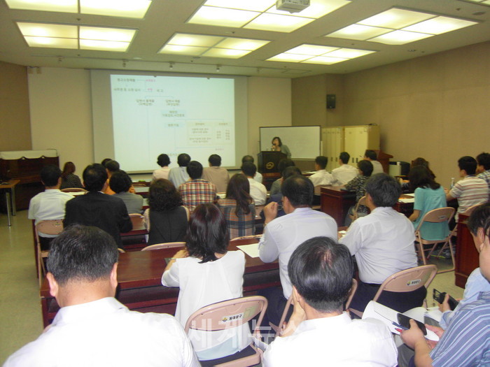 ▲ 지난해 동대문구 직원들을 대상으로 소송실무교육 강사로 나선 이영지 감사담당관이 소송 절차를 설명하고 있다. © 세계뉴스 |