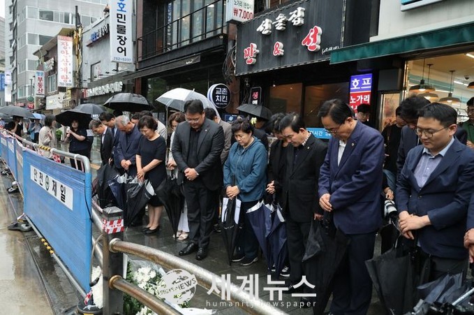 [세계뉴스 차성민 기자]서울시의회 국민의힘 의원들이 시청역 역주행 사고에 희생자 현장을 찾아 애도를 표하고 사고 원인을 규명하고 대책을 마련하겠다고 밝혔다.